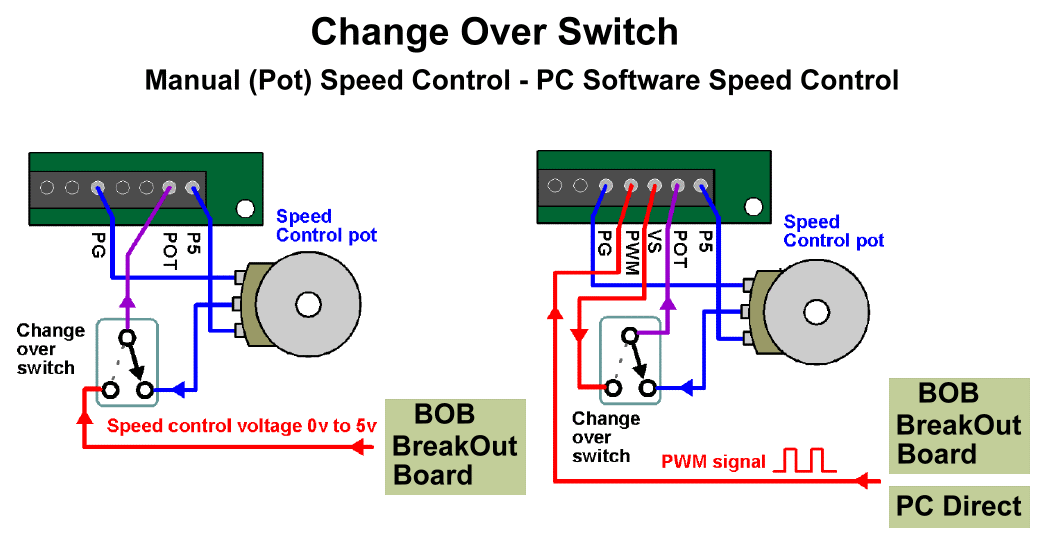 If you only occassionally use manual speed control, we recommend that you leave your Firmware set for PC software speed control and use a change over switch for switching between manual knob speed control and PC speed control.